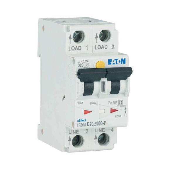 FRBDM-D20/2/003-F, stikalo zaščitno, diferenčno, elektronsko, RCD/MCB, tip G/F, karakteristika D, 2p, In=20A, Idn=0,03A, Icn=10kA