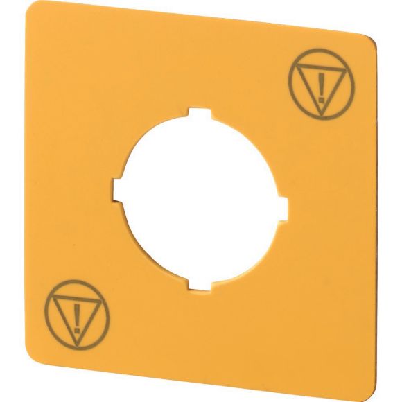 M22-XYK-ESS, napisna ploščica, samolepilna, rumena; VxŠ = 50 x 50 mm, simbol "Emergency stop"