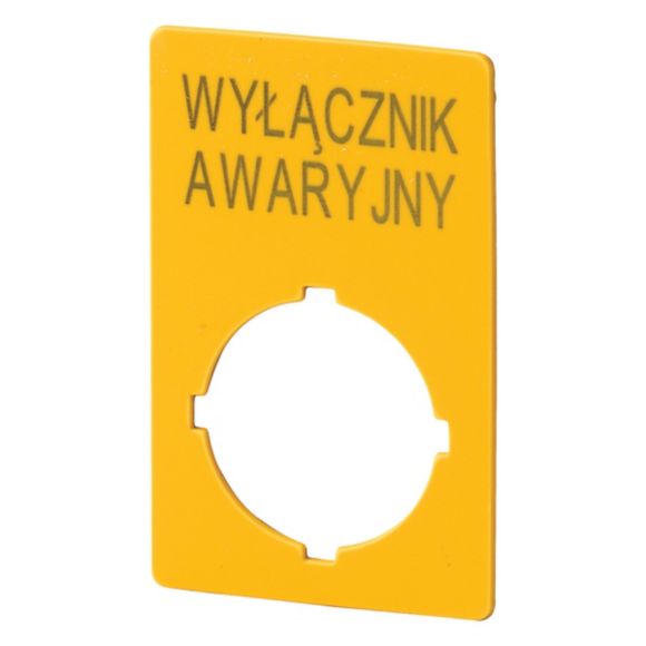 M22-XZK-PL99, napisna ploščica, samolepilna, rumena, VxŠ=50x33mm, napis "Emergency stop" v poljskem jeziku