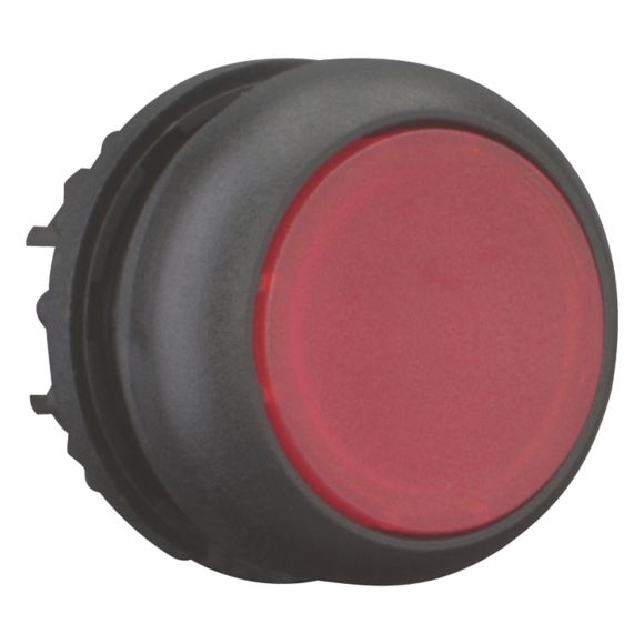 M22S-DL-R, tipka, rdeča, svetleča, ravna, povratna, črn obroček