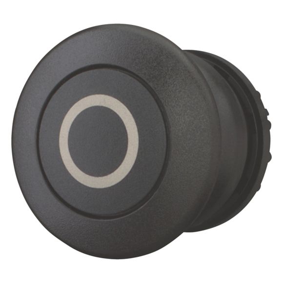 M22S-DP-S-X0, tipka, goba, črna, z oznako "O", povratna, črn obroček