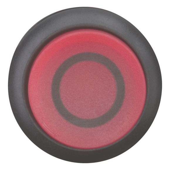M22S-DRLH-R-X0, tipka, rdeča O, svetleča, povišana, zaskočna, črn obroček