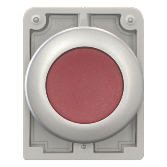 M30C-FDL-R, tipka, rdeča, svetleča, ravna, povratna, obroček metal/titan