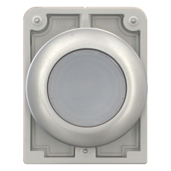 M30C-FDL-W, tipka, bela, svetleča, ravna, povratna, obroček metal/titan