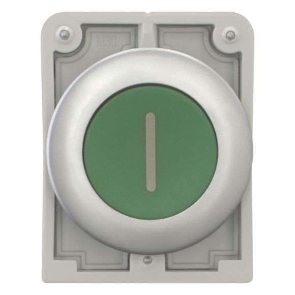 M30C-FDR-G-X1, tipka, zelena I, ravna, zaskočna, obroček metal/titan