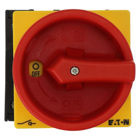 P1-40/V/SVB/N, glavno stikalo, P1, 40 A, oddvojena vgradnja, 3 polno + N, funkcija izklopa v sili, rdeče rumena ročica, zaklep v 0 (Off) poziciji