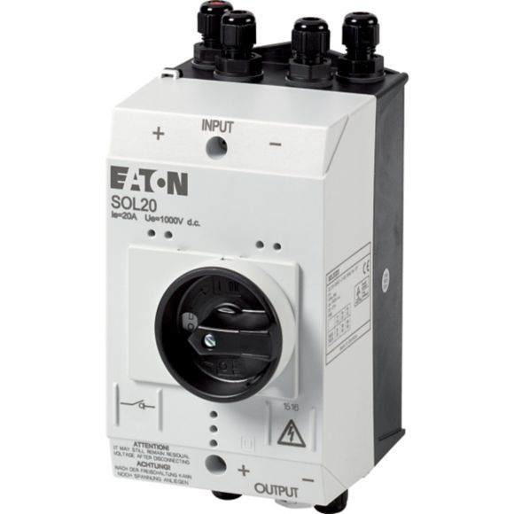 SOL20/2MV, odklopno stikalo 1000 V DC v IP65 ohišju, 20 A, 2p, uvodnice, 2xM12, 1xM16