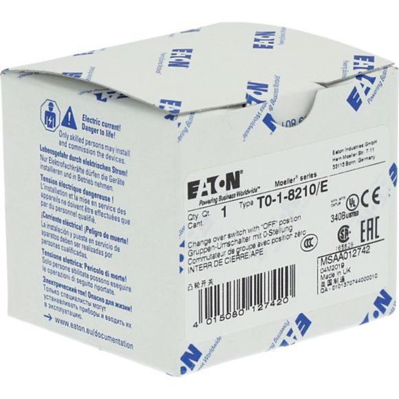 T0-1-8210/E, preklopno stikalo, T0, 20 A, vgradnja na čelno ploščo, 2 kontakta, 60 °, z 0 (Off) pozicijo, 1-0-2