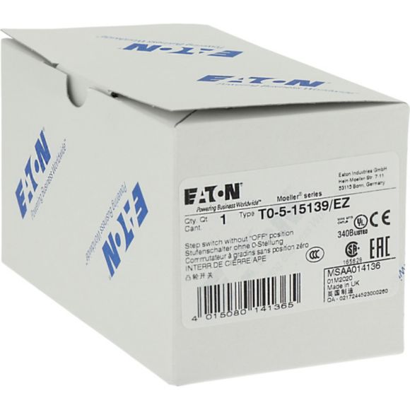 T0-5-15139/EZ, stopenjsko stikalo, T0, 20 A, vgradnja na čelno ploščo, kontakti: 10, 45 °, zaskočno, 1-5