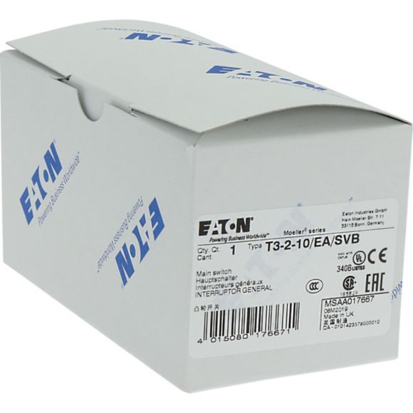 T3-2-10/EA/SVB, glavno stikalo, T3, 32 A, vgradnja na čelno ploščo, 3 polno + N, funkcija izklopa v sili, rdeče rumena ročica