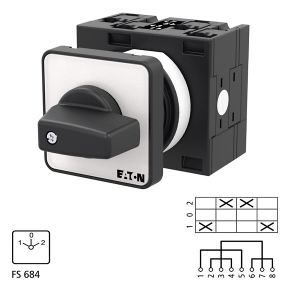 T3-2-8400/E, preklopno stikalo, T3, 32 A, vgradnja na čelno ploščo, kontakti: 4, 45 °, zaskočno, "0" (Off) pozicija, 1-0-2