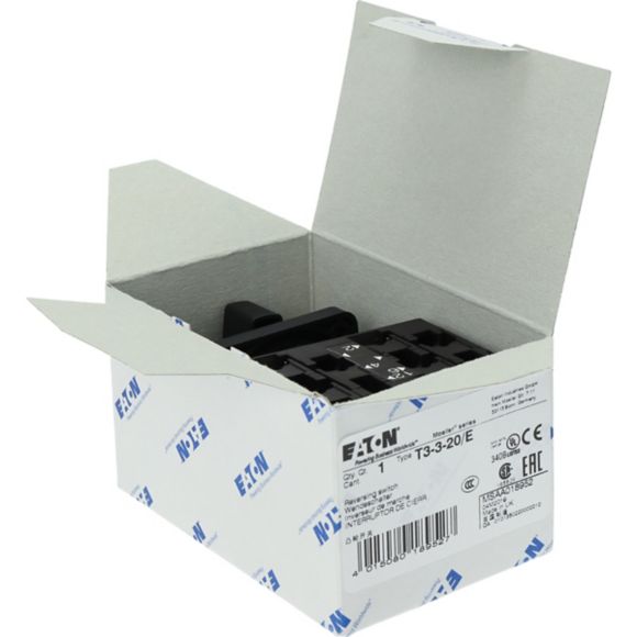 T3-3-20/E, preklopno stikalo, T3, 32 A, vgradnja na čelno ploščo, kontakti: 6, 45 °, zaskočno, "0" (Off) pozicija, 2-0-1