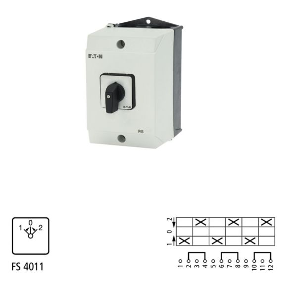 T3-3-8216/I2, preklopno stikalo, T3, 32 A, v ohišju, 6 kontaktov, 45 °, z 0 (Off) pozicijo, povratno iz obeh pozicij v 0, 2>0<1