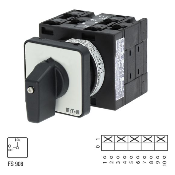 T3-3-8341/E, ON-OFF stikalo, T3, 32 A, vgradnja na čelno ploščo, 5-polni, črna ročica