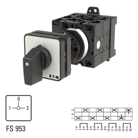 T3-4-8294/Z, preklopno stikalo, T3, 32 A, oddvojena vgradnja, 8 kontaktov, 90 °, z 0 (Off) pozicijo, 1-0-2