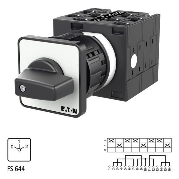 T3-4-8440/EZ, Multi-speed stikalo, T3, 32 A, vgradnja na čelno ploščo, kontakti: 8, 60 °, zaskočno, "0" (Off) pozicija, 0-1-2