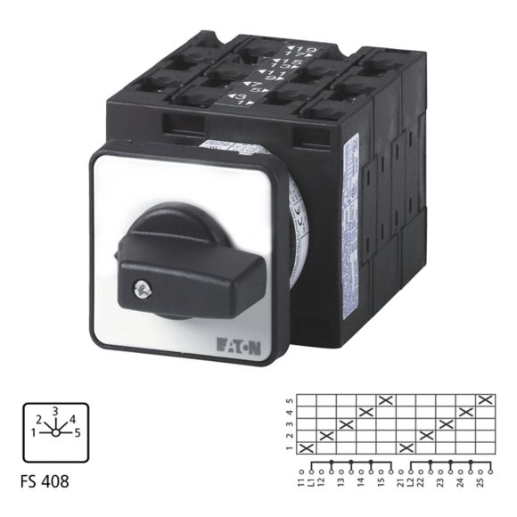 T3-5-15139/E, stopenjsko stikalo, T3, 32 A, vgradnja na čelno ploščo, kontakti: 10, 45 °, zaskočno, 1-5