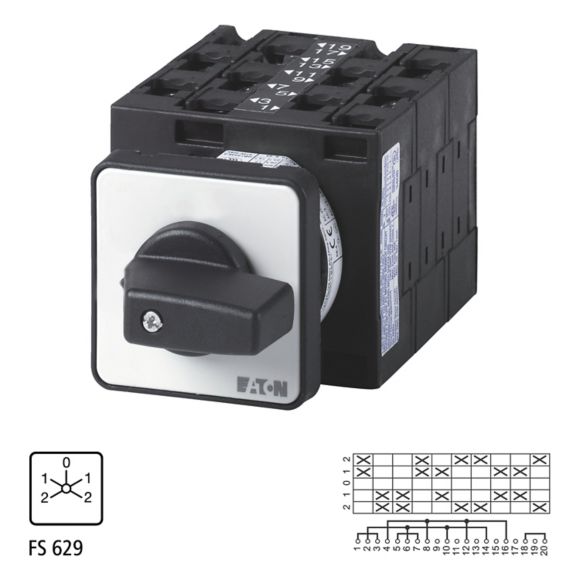 T3-5-8453/E, Reverzno multi-speed stikalo, T3, 32 A, vgradnja na čelno ploščo, kontakti: 10, 60 °, zaskočno, "0" (Off) pozicija, 2-1-0-1-2
