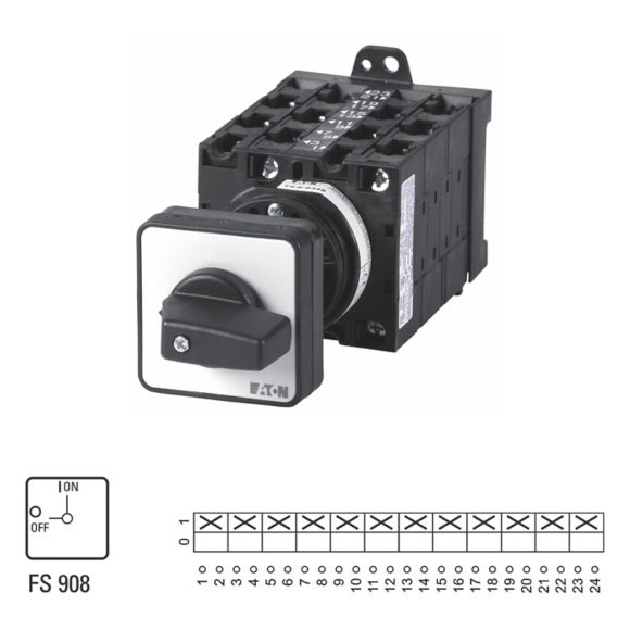 T3-6-8348/Z, ON-OFF stikalo, T3, 32 A, oddvojena vgradnja, 12-polni, črna ročica